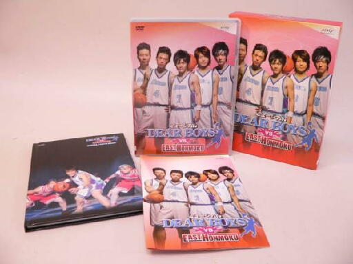 | | 躍動するカラダ!ドリブルの鼓動!!リアルバスケのヒートを体感せよ!!! バスケ経験豊富な若手俳優をメインに起用! ボールを使ったリアルバスケミュージカル! DVD「ミュージカルDEAR BOYSvs.EASTHONMOKU 」です。 2008年7月31日・全労済ホールスペース・ゼロでの公演を編集収録。 特典映像に稽古風景・楽屋映像などのメイキング収録。 ピクチャーレーベル仕様 DVD専用パンフレット付き。 初回三方背BOX付き。初回限定スペシャルフォトブック付き。 BOXに傷み・退色・角にヘコみ、ケース・盤面に傷があります。 中古品。 出演:池田竜治、南圭介、岡田亮輔、兼崎健太郎、鯨井康介、湯澤幸一郎、他